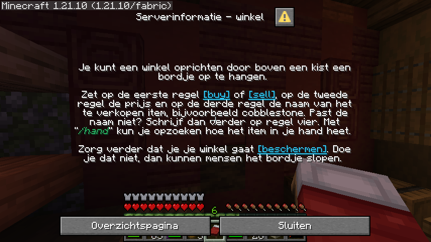 Dit is wat je te zien krijgt als je /help winkel typt.