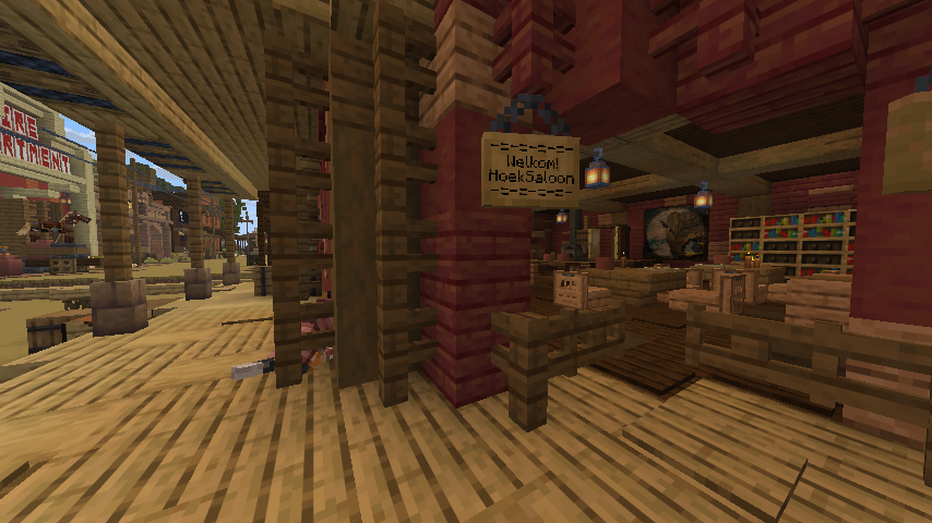 Dit is niet de saloon waar je spawnt, maar hij staat wel in hetzelfde dorp. Loop de saloon waar je spawnt uit, sla linksaf, en dan vind je het aan het eind van de straat aan je linkerhand.